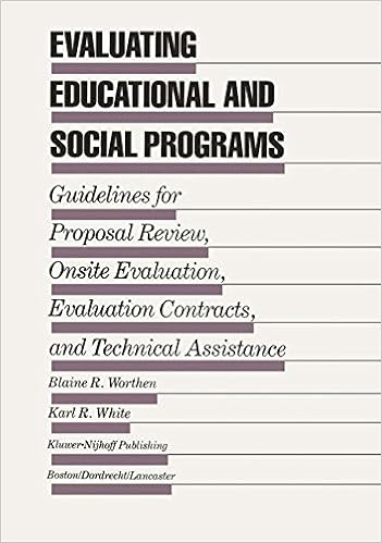 Read Online or Download Evaluating Educational and Social Programs: Guidelines for Proposal Review, Onsite Evaluation, Evaluation Contracts, and Technical Assistance PDF